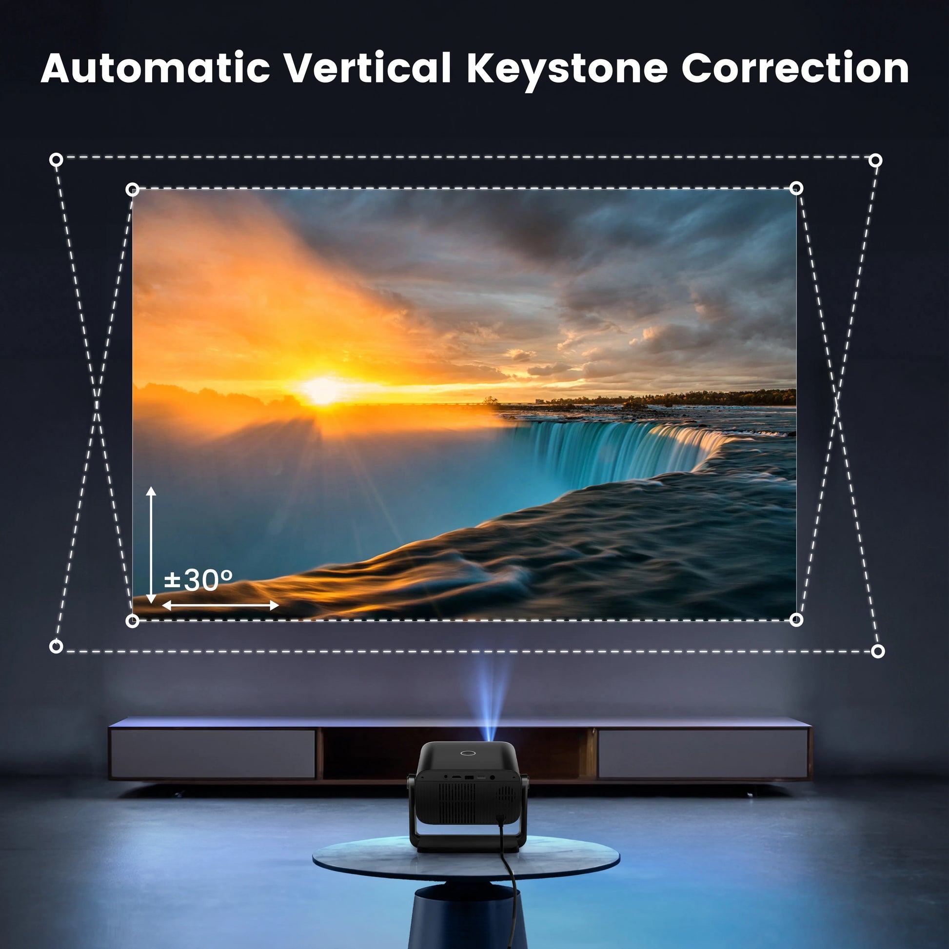 【Auto Keystone & 100%-50% Zoom】