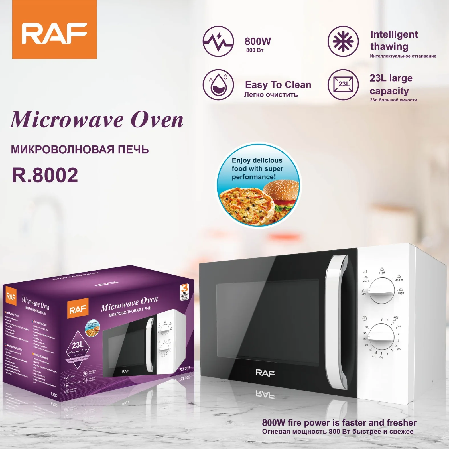 5. Safety Features: The microwave includes essential safety features such as a child lock function to prevent accidental operation and a sturdy door mechanism to ensure safe use.