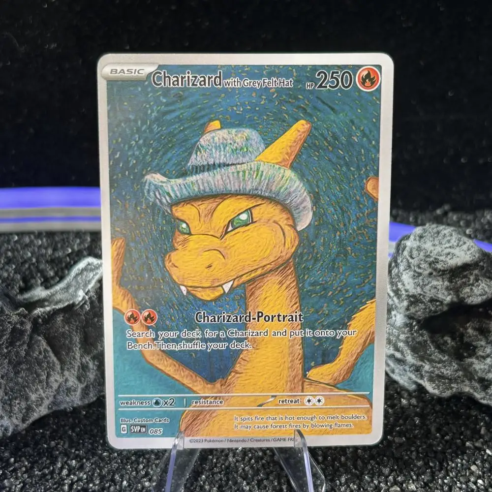 DIY PTCG Starry Night Collection Cards Van Gogh Museum Charizard Card PTCG Self Made Cartoon Anime Game Collection Cards Gift