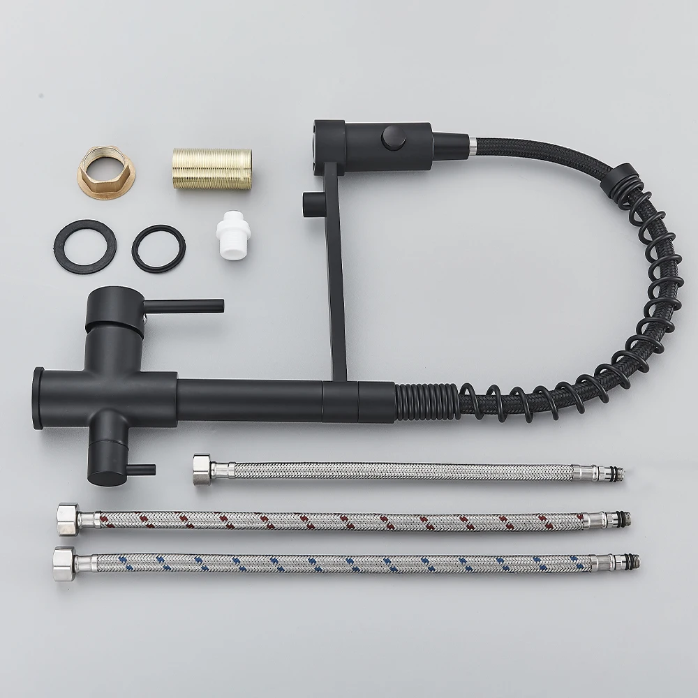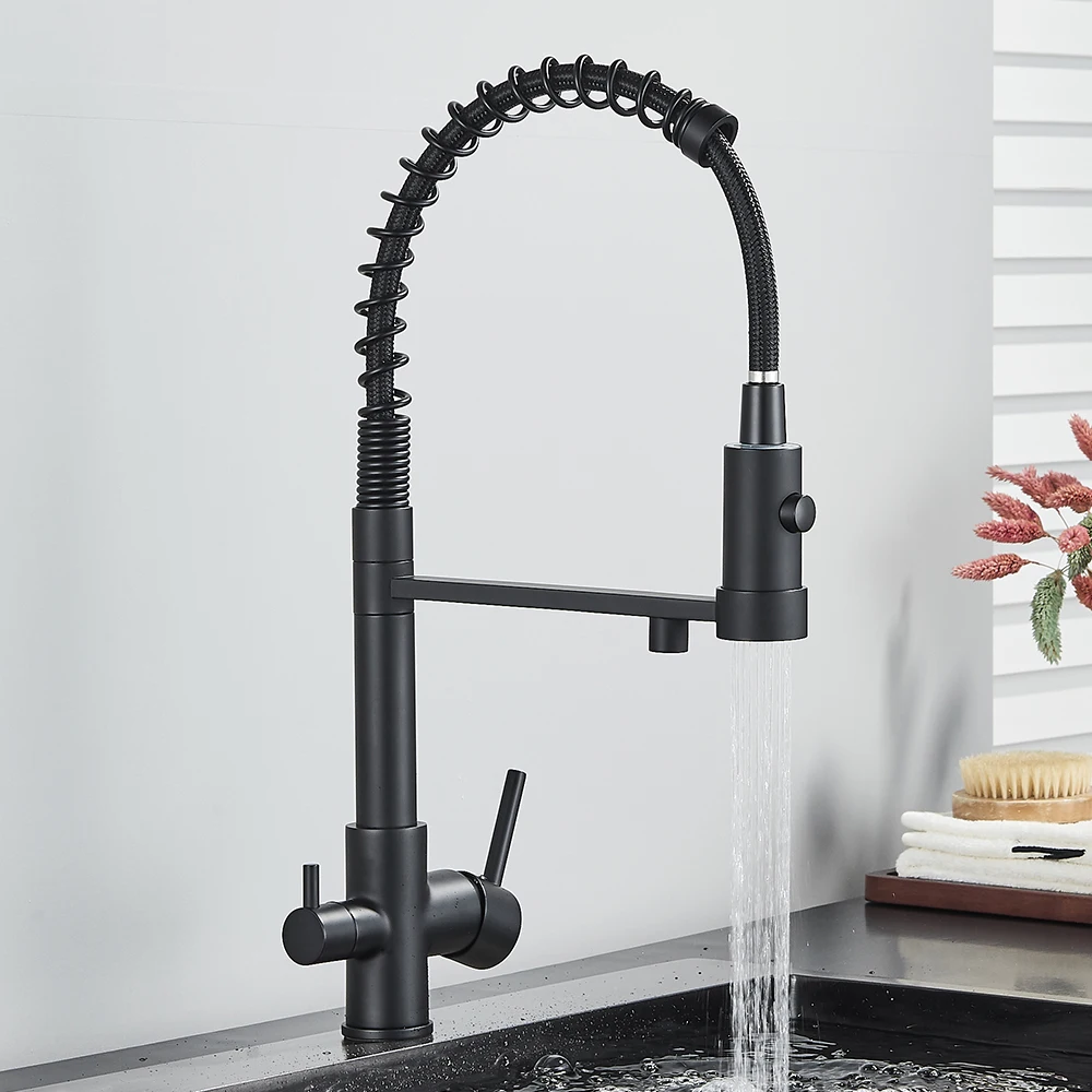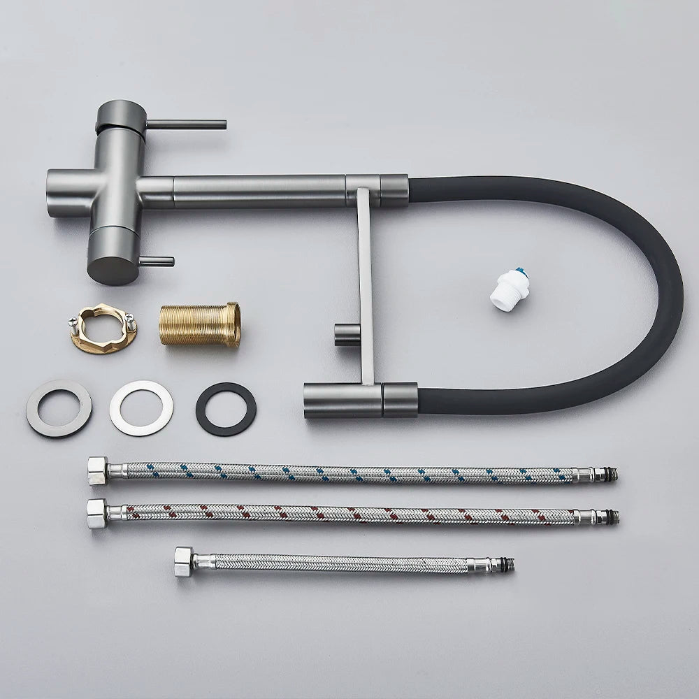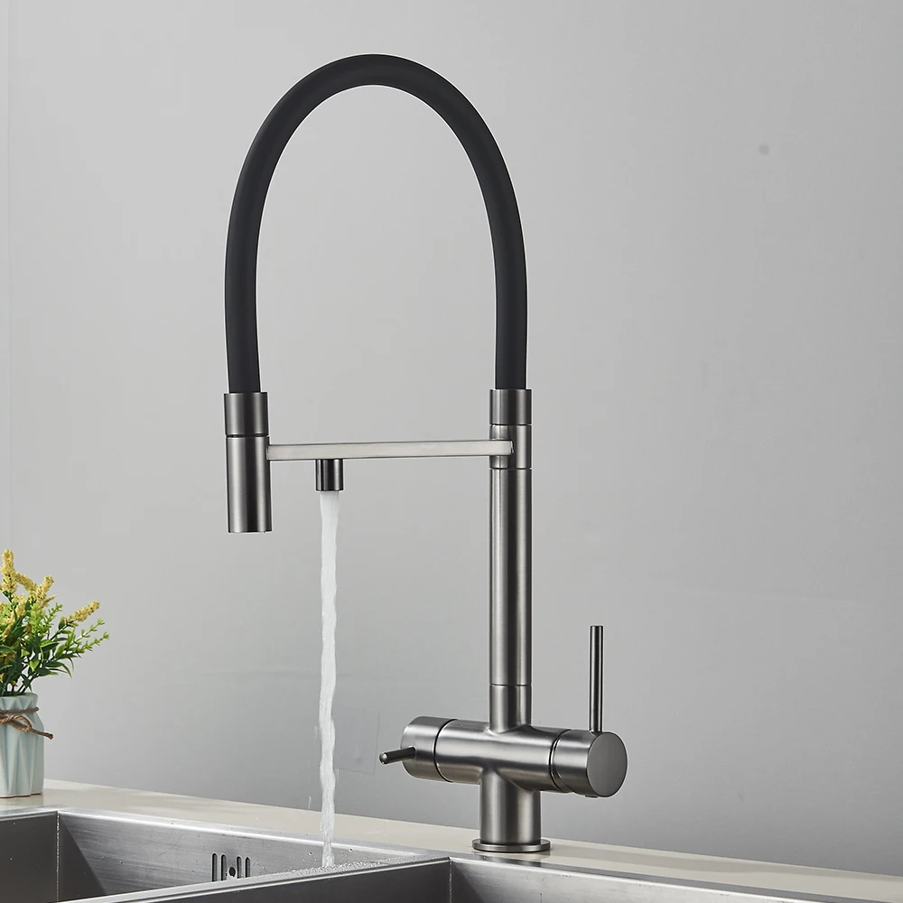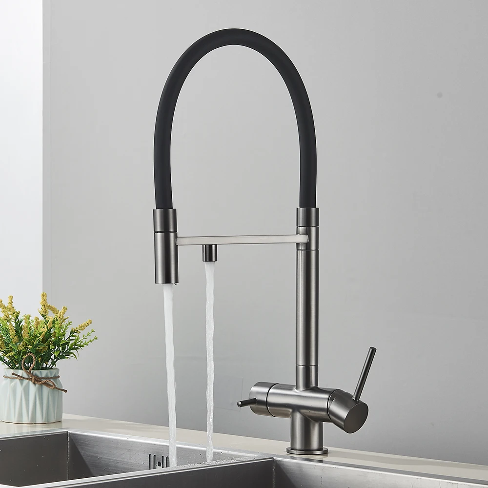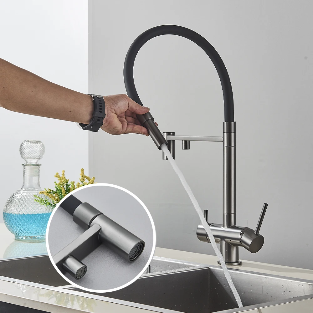 Gray Filtered Kitchen Faucet Dual Spout Hot Cold Mixer Purification Water Crane Filter Water Faucet Deck Mount
