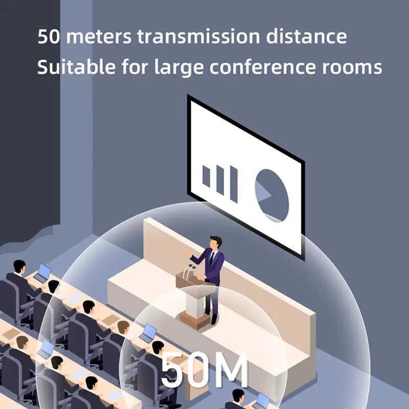 Supports transmission distances of up to 50 meters, provided that the space is open and unobstructed