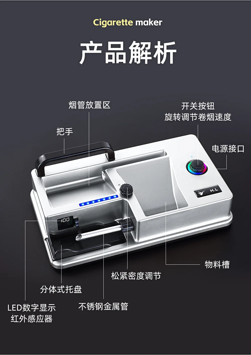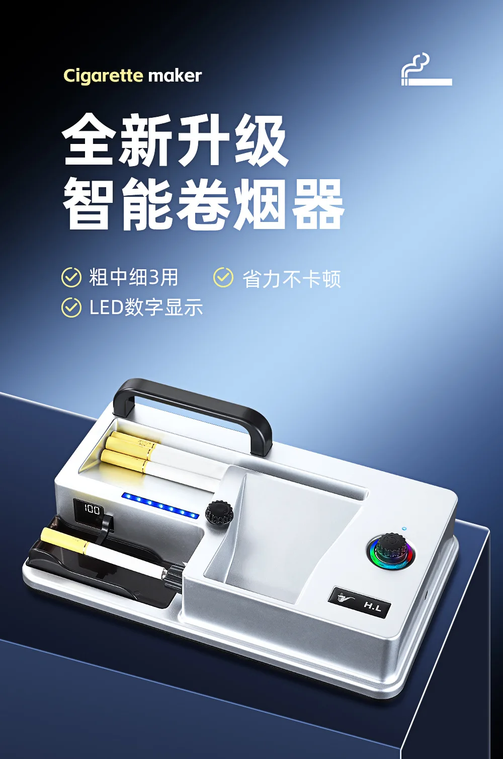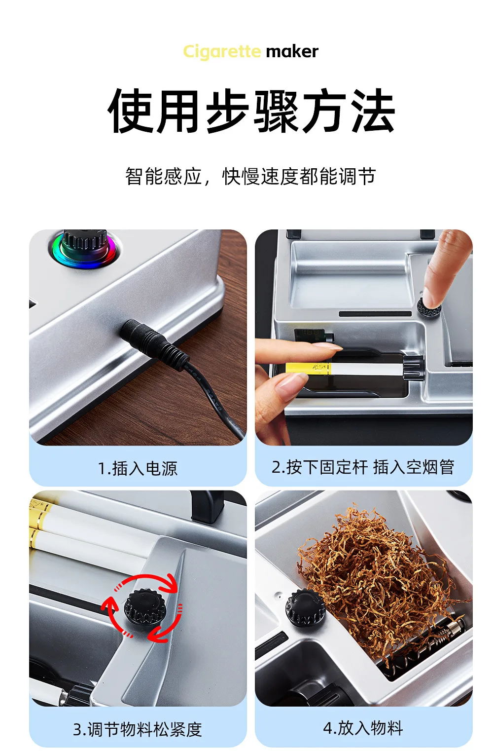 New Cigarette Machine, Coarse, Medium and Fine, Fully Automatic Electric Cigarette Maker, Small Household Intelligent Sensing