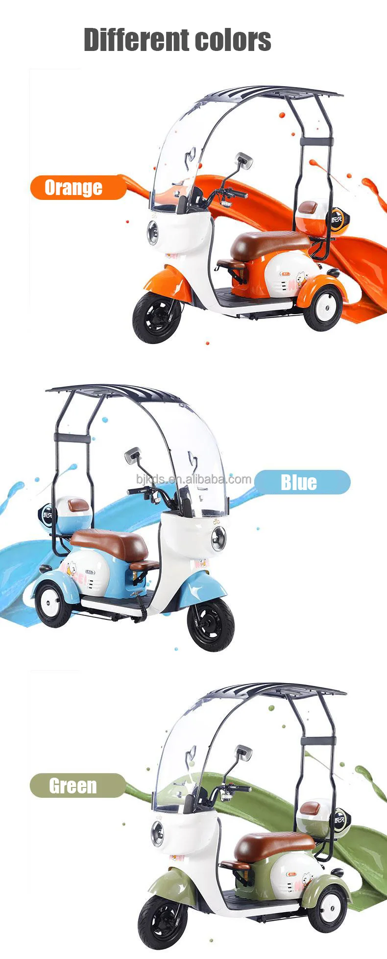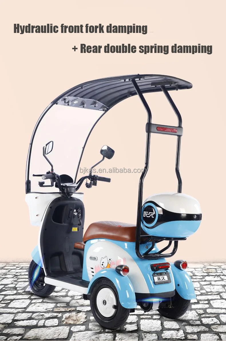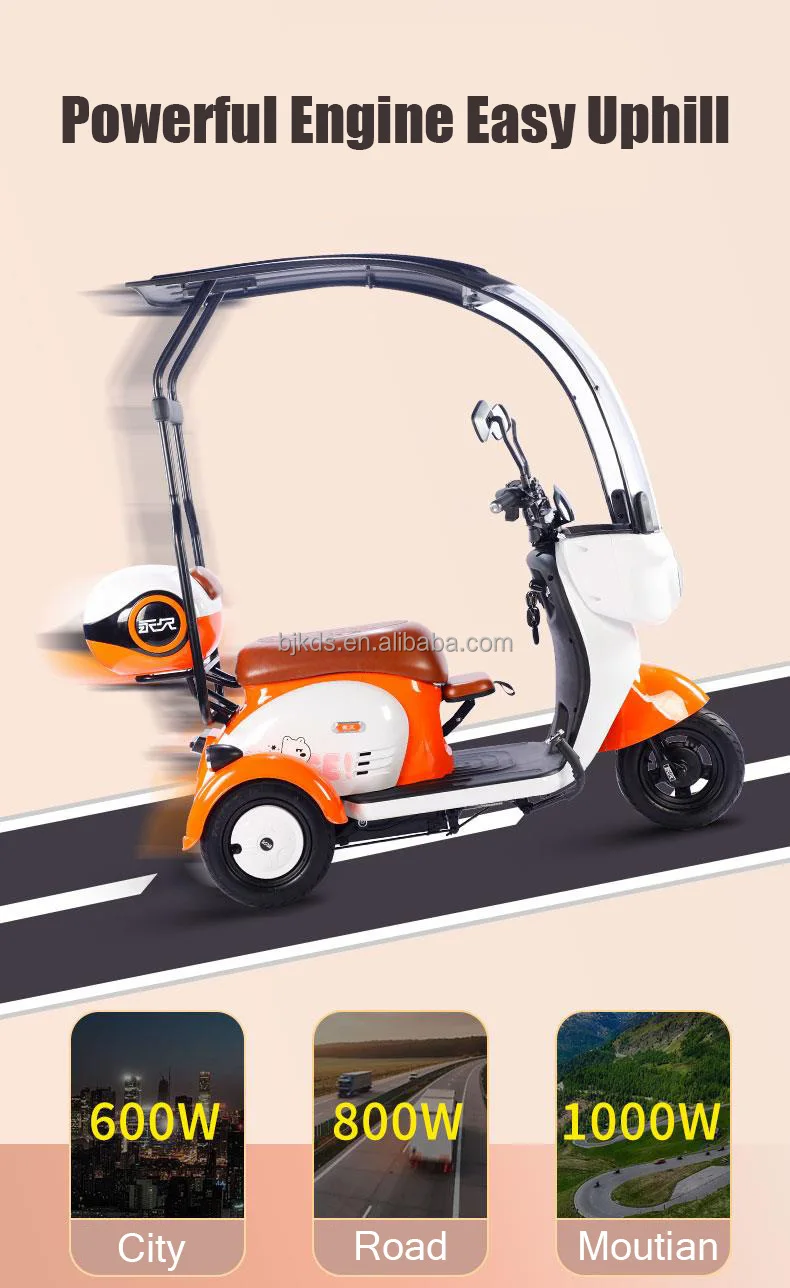 New Model Low Speed Long Range 3 Wheels Tuk Electric Scooter Tricycle With Roof