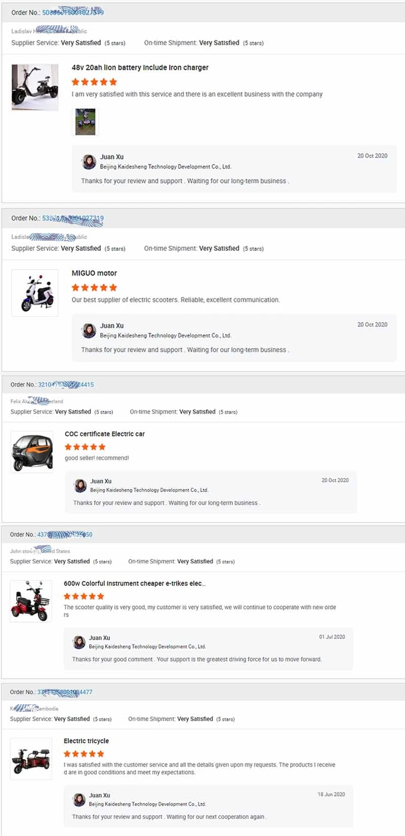 A . Get sample for testing market? Yes . B . Delivery time for sample orders? 10 days except special customized orders. C . Payment terms? T/T , L/C at sight , Western Union , Paypal , Trade Assurance . D . Have Electric bikes 100% assembled well in stock ? No, all Electric bikes will be newly produced according to your orders including samples. E . Mix different models in one container? Yes, we will calculate for you how many pieces each model can be put in , and give your suggestions.